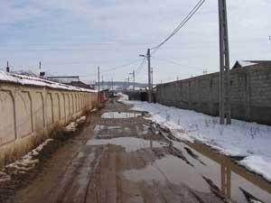 Nici strada care ar trebui sa treaca drept strada principala nu arata mai grozav. Ea este strajuita intr-o parte de un canal, plin de gunoaie, iar in cealalta de curti. „Asta este drumul pe care il am de parcurs zi de zi. Locuind aici, ma simt pur si simplu discriminata. Eu nu pot comanda pizza pentru ca masina nu vine pâna aici, nu pot invita colegele fetei la ziua ei de nastere pentru ca imi este rusine de locul unde locuiesc. Daca s-a mai facut câte ceva pe aici s-a datorat oamenilor care au mai adus câte o masina de piatra ca sa nu ne rupem masinile in doua“, a precizat femeia. Spusele Danei Cotea sunt intarite si de vecini. Intrebat ce face, Marian Pirvu, vecinul care tocmnai venea impingând o bicicleta, a spus: „Ce sa fac? Inot prin noroaiele astea ale noastre. Ca noi suntem buni de platit impozite ca si aia care locuiesc la asfalt. Domnul primar are bani de facut sarbatori pe la Leamna, dar nu are pentru niste masini de piatra, ca nu vrem asfalt, nu cerem decât o masina care sa indrepte cât de cât terenul“, a spus Marian Pirvu.