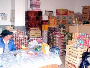 Pateurile, zacusca, fasolea si castraveciorii murati, cutiile cu fructe si baxurile de apa sau ulei, sacii cu zahar, orez, faina, toate au luat locul maimutoilor si jucariilor frumos colorate, care pâna acum o luna ii umpleau de bucurie pe micutii din Negoi. De aici, din gradinita-depozit, in fiecare zi pleaca spre tabara din capatul satului pachete cu mâncare.