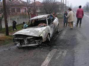 Un Audi 80, inmatriculat in Franta, a ars aproape in totalitate ieri-dimineata, in jurul orei 6.50, pe DN 55, in localitatea doljeana Teasc. Incidentul a trezit suspiciuni oamenilor legii, intrucât cei care se aflau in autoturism au plecat de la fata locului, fiind preluat de Serviciul de Investigatii Criminale si de lucratorii de la furturi auto. „Incendiul a fost stins de pompierii civili de la Bratovoiesti, insa masina a ars in proportie de 90 la suta. Curios este faptul ca nu a ramas nimeni la fata locului si nici nu au anuntat incendiul“, a declarat agent-sef Cornel Georgescu, ajutorul sefului de post din Teasc. Dupa primele cercetari ale politistilor s-a stabilit ca masina nu figureaza ca furata si a fost introdusa legal in tara in anul 2005, iar actualul proprietar este Ionut Popescu, din Craiova. Proprietarul masinii nu s-a prezentat ieri in fata oamenilor legii pentru a lamuri situatia, fiind asteptat astazi pentru declaratii. Abandonarea autoturismului ars de catre sofer si ceilalti pasageri este pus deocamdata de oamenii legii pe seama faptului ca conducatorului auto i-a fost teama de eventualele sanctiuni in cazul in care masina nu era inmatriculata, acesta ar fi fost condus sub influenta bauturilor alcoolice ori nu ar fi avut permis.