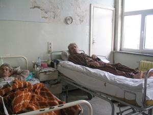 Intr-un alt salon, aceeasi poveste. Doi batrâni craioveni zac molesiti de soarele care le bate in plina figura prin geamul deschis. Amândoi in chiloti si cu bluza de pijama descheiata la piept spun aceeasi poveste. „Salteaua este tare ca o scândura, cred ca are 40 de ani. Cearsafurile sunt vechi, avem si ceva goange de prin canalizare care ne viziteaza in fiecare noapte, dar avem termopane la fereastra. Mi s-a cerut sa cumpar perfuzoare, fesi si medicamente si m-am executat. Nu m-au costat decât 300.000 de lei“, a spus unul dintre ei, pe nume Marius Radulescu, incercând sa arate in câteva cuvinte conditiile din spital.