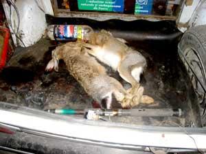 Asupra celor trei vânatori, lucratorii Inspectoratului Judetean al Politiei de Frontiera (IJPF) au gasit doi iepuri de câmp care fusesera vânati cu ogarii. Braconierii au fost prinsi in flagrant la o actiune de combatere a braconajului cinegetic realizata de lucratorii operativi ai Politiei de Frontiera, in colaborare cu Asociatia Judeteana a Vânatorilor si Pescarilor Sportivi (AJVPS), filiala Corabia.