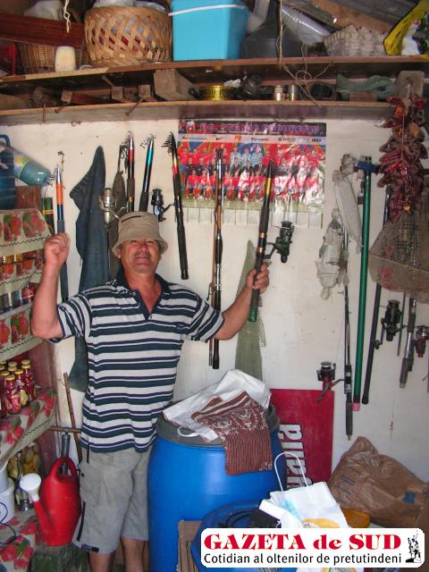 L-am găsit pe oltean acasă. Nu era pe baltă, că n-a început încă sezonul – se depun icrele şi e interzis la peşte, ne-a explicat. Aşa că, dacă tot era în „concediu“, se ocupa de treburile casnice. Mai exact, tocmai terminase de gătit – saramură, evident – şi acum făcea ordine în cămară. „Inventariez undiţele şi borcanele cu marinată“, zise Ştefan Tobă, „cam atât intră în sarcinile mele. Văd ce lipseşte, ce nu mai e bun, ce trebuie să mai iau. Cu toate că nu prea duc lipsă de ceva, pasiunea nu se poate stăpâni: tot timpul cumpăr ba o mulinetă, ba un cârlig, chestii de-astea de pescar înrăit“, începu el să-şi recunoască damblaua care-l chinuieşte de o viaţă.