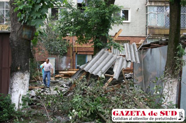 Un acoperiş al unui bloc din zona 11 iunie a municipiului Târgu Jiu a fost smuls joi noapte de o furtună puternică. Mai multe maşini au fost avariate de copacii doborâţi de furtună, iar acoperişul a căzut pe garajele din faţa unui bloc, cauzând pagube de zeci de milioane de lei vechi. „La ora 22.00 a început furtuna, dar nu ne aşteptam ca vântul să ne ia acoperişul. Este făcut de mulţi ani. Au mai fost ploi puternice şi rafale de vânt, dar acum au distrus tot. Oamenii de la etajul patru stau cu ligheanele în casă, că le plouă“, a spus o locatară.