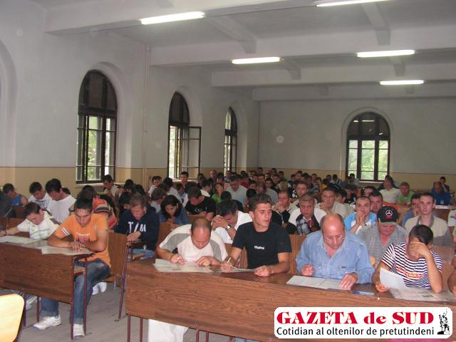 George, alt veteran al examenului de admitere, pare să fi dat greş şi de această dată. E a treia oară. Dar nu i se pare grav, că ştie pe unul care a dat sala de 11 ori şi, când a luat-o, a picat traseul. Greu. Acum, omul e în stadiul de pregătire intensă, din câte ştie George. Pe el şi pe mulţi alţii, experienţa comună a eşecurilor anterioare îi determină să nu dramatizeze situaţia. Aşa cum se întâmplă în cazul domnişoarei care, de la aflarea rezultatului, după corectarea lucrării în faţa comisiei conduse de subcomisarul Constantin Stan, şeful biroului examinări, plânge fără încetare. Nu înţelege cum şi a doua oară a putut gafa. Doar 17 puncte. „E imposibil“, îşi spune printre lacrimi. Iubitul său încearcă să o consoleze. Primeşte încurajări şi din partea altei „veterane“, care a dat sala de trei ori. A şi luat-o de tot atâtea ori, dar a picat mereu la traseu. Se pare că pe ea o paralizează uniforma poliţistului. “Când îl văd în dreapta, nu mai sunt bună de nimic. Fac numai tâmpenii, fie mi se opreşte motorul, fie iau mâinile de pe volan ca în primele ore de condus. O dată chiar am luat-o pe contrasens. Am vrut să ocolesc o groapă. Poliţistul n-a vrut să înţeleagă intenţia mea. M-a picat. În curând, o să ajungă să mă cunoască toţi poliţiştii”, povesteşte Irina. În alt colţ al Facultăţii de Agronomie, instituţie care găzduieşte examenul scris, alt grup, alte discuţii, alte probleme, care îşi au izvorul, se pare, în zona infracţiunilor şi contravenţiilor. „Sunt cele mai grele“. Mirela o aprobă pe domnişoara cochetă care se afla la ora mărturisirilor. „Am îndoit cartea pe la colţuri de când o studiez şi pot să spun că există diferenţe mari între situaţiile prezentate în carte şi cele de la examen“. Alt chiot de bucurie atrage atenţia. Un candidat, se pare că tot din tabăra „veteranilor“ pentru care examenul a devenit un coşmar, se bucură în sfârşit de succes. „Am luat“. Sare  şi-şi îmbrăţişează prietenele care până atunci îşi frământau nervos mâinile. Mai e traseul. De fapt, o nimica toată. „De aici încolo nimic nu mă mai poate opri să obţin carnetul“, spune fericitul canditat, în vreme ce caută cu înfrigurare un număr de telefon în agendă. Formează şi începe o conversaţie departe de ochii curioşi ai celor care îşi aşteptau cunoscuţii să iasă. Uşa se deschide din nou. Alt individ îşi anunţă victorios reuşita. Şi ce dacă e doar pe jumătate? Ea tot merită sărbătorit!. „Am luat B-ul, dar nu şi C-ul. E mai greu şi nici nu am învăţat suficient. Recunosc“. Un moment de sinceritate, urmat de altul: „În sfârşit, colegii de serviciu se vor bucura de baxul de bere promis de câteva luni“. Şi din nou bucuria se spulberă: „Doar trei puncte rezolvate şi cică aspiri la profesionişti!“, e apostrofat cu oarecare fineţe candidatul Marin de colegul său de suferinţă care a trebuit să dea examen pentru că a trecut linia continuă. Un poliţist l-a văzut. Zi cu ghinion… I-a suspendat carnetul.  Şi totuşi, sala pare să fie mai uşor de trecut, căci „este o promovabilitate de 40 la sută, numai că, după cele două probe, procentajul scade la 28-29 la sută“, a precizat subcomisarul Constantin Stan, şeful biroului examinări.