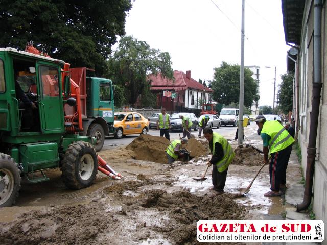 „Este vorba de o conductă care s-a fisurat. Asta e, trebuie să recunoaştem, conductele sunt vechi, ruginite, se sparg“, a declarat Radu Viorel, reprezentant al CA Oltenia, care a supravegheat lucrarea. „Acum acoperim groapa, tasăm nisipul, curăţam zona şi refacem asfaltul, pentru a lăsa strada în condiţii normale“, a mai declarat Radu Viorel. Reparaţiile s-au încheiat după ora cinci după-amiază. Nu este primul eveniment de acest fel pe strada Caracal. În urmă cu un an, în iulie 2006, altă conductă de apă s-a spart şi a „spălat“ nisipul infrastructurii, asfaltul prăbuşindu-se sub greutatea autovehiculelor.