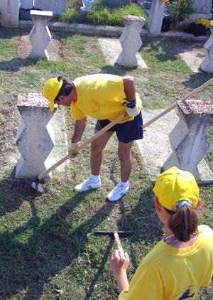 Sunt elevi şi studenţi din Caracal, aceştia din urmă reuşind să aducă alături de ei şi colegi din centrul universitar unde învaţă. Îşi petrec vara, deşi mulţi dintre cei de vârsta lor poate nu-i înţeleg, în modul cel mai plăcut cu putinţă. Au început acţiunile de voluntariat o dată cu vizita partenerilor lor vechi de-acum, belgienii. Cum însă timp au suficient pe perioada vacanţelor, iar belgienii, după experienţe mai puţin fericite în România, se gândesc de două ori înainte să-şi programeze noi acţiuni aici, a fost de ajuns să descopere site-ul Oficiului Naţional pentru Cultul Eroilor, iar prof. Alexandra Iliescu să le vorbească despre tabere, pentru a-şi face planuri.
