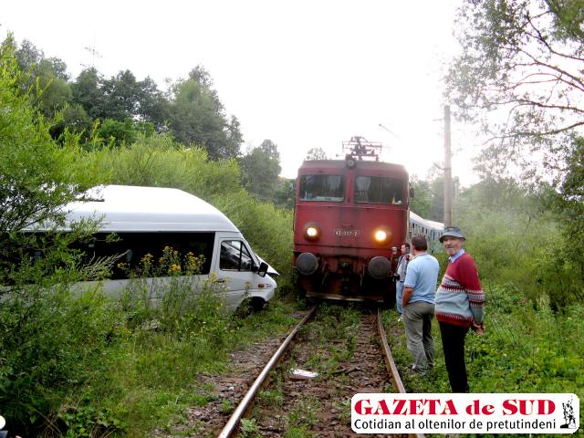 Maxi-taxi proiectat în faţa trenului
