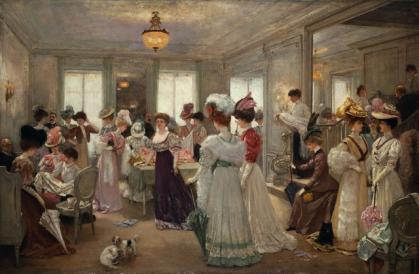 Poposim mai întâi în casa unei văduve, conduşi de memoriile Olgăi Gigurtu adunate în „Amintiri care au dispărut de când mi-aduc aminte, femei de altădată“. „Conferinţele, concertele, câteodată, dar mai rar teatrul şi aceste mici întruniri hebdomadare, în care gândul zbura mai mult înapoi, erau singurele distracţii ce ni le acordam, toate eram văduve… Pe când ceaiul fierbea în samovarul de alamă lucioasă, cu un murmur plăcut, ca un acompaniament în surdină al convorbirilor noastre, unele lucrau miniardise, frivolităţi dantelate de Irlanda sau de Veneţia, altele şedeau rezemate alene în nişte jilţuri mari adânci, bune de siestă… Vorbeau de toate fără pedanterie, nici răutate, subiectele se urmau de sine şi erau despre ultima piesă sau noul roman, ultimul eveniment mondial sau poliţia locală, sau, în fine, ultimul scandal. Fiind toate inteligente, aceste subiecte dau prilej la reflexiuni critice sau apărări interesante, cu atât mai pasionate cu cât acuzările erau mai aprige, căci cât de mic să fie cercul, tot nu se poate ca părerile să fie toate de acord!“. Şi dacă astăzi a fost zi de întâlnire între doamne, mâine este zi de concert. Lumea se adună, noi idile se consumă dând naştere unor răutăţi mai mici sau mai mari, bârfelor mondene.