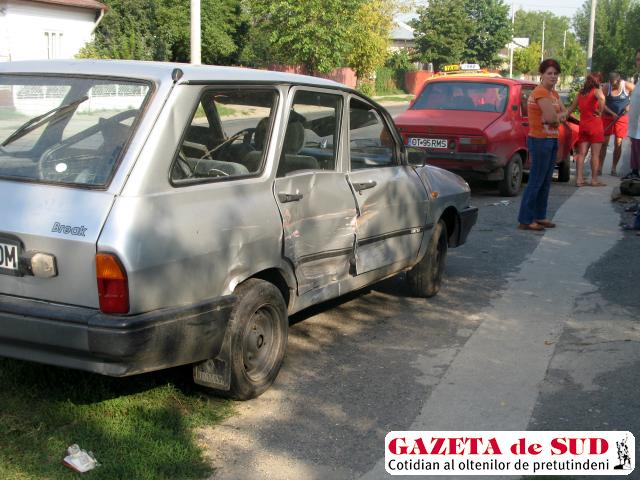 Un tânăr s-a răsturnat cu maşina pe care o conducea, după ce autoturismul său a fost lovit în plin de un altul. Incidentul rutier a avut loc sâmbătă dimineaţă, pe strada Tudor Vladimirescu din Slatina. Viorel P., din municipiul Slatina, se deplasa pe strada Tudor Vladimirescu, la volanul unui autoturism marca Dacia Break, cu numărul de înmatriculare OT- 07-SDM. La intersecţia cu strada Vlad Tepeş, Break-ul a fost lovit în plin de o Dacia 1310, al cărei şofer, Marian R., din Slatina, nu a respectat semnificaţia indicatorului rutier „Cedează trecerea“ şi a ieşit pe un drum cu prioritate fără să se asigure. În urma impactului, din fericire, nimeni nu a fost rănit. Break-ul s-a răsturnat pe asfalt şi s-a dus câţiva metri pe plafon, acroşând un autoturism Dacia Logan, care era parcat regulamentar pe marginea drumului.