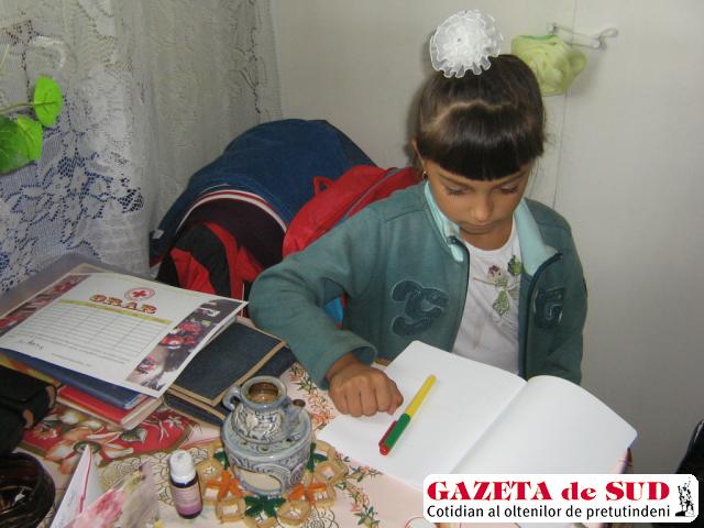 Lecţiile le fac împreună, la masa aşezată lângă fereastră. Ionela deschide abecedarul şi ia un caiet, iar bunicul o urmăreşte atent cum începe să scrie. „Mi-a spus învăţătoarea că are scris frumos şi este cuminte la şcoală. Şi-a făcut prieteni, îi place“, spune bunicul. Fetiţa ridică ochii căprui şi îi zâmbeşte.