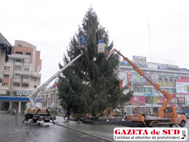 12 brazi cu înălţimea între opt şi 16 metri vor fi amplasaţi, în cursul acestei săptămâni, în aproape toate cartierele Craiovei. Ion Petre, directorul Regiei Autonome de Administrare a Domeniului Public şi Fondului Locativ, a precizat că aceştia au fost achiziţionaţi din zona Polovragi, de la Romsilva Gorj, cu aproximativ 10.000 de lei. „Cei mai înalţi, care au 16 metri, sunt cei amplasaţi la prefectură şi la Teatrul Naţional“, a declarat Ion Petre. Tot în această săptămână, se preconizează că vor fi finalizate şi cele două orăşele ale copiilor amplasate la Teatrul Naţional şi pe esplanada din Craioviţa. Reprezentanţii primăriei au menţionat că, spre deosebire de anii trecuţi, acestea vor fi dotate cu mai multe jocuri de ultimă generaţie. Inaugurarea orăşelelor va avea loc pe 20 decembrie la Teatru şi pe 21 decembrie în Craioviţa, unde se vor desfăşura diverse spectacole, cei prezenţi putând să admire focuri de artificii.