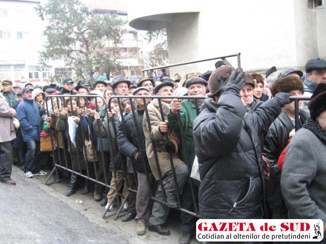 „Multora li s-a făcut rău din cauza îmbulzelii şi i-a luat salvarea. Nici n-au mai apucat să înregistreze cererile, pentru că au leşinat. Uitaţi câte obiecte au rămas de la ei. Pe jos sunt răspândite multe căciuli, haine şi umbrele. După ce se vor înzdrăveni, trebuie să vină să le adune“, a mai spus Gheorghe Popa, un pensionar care aştepta la coadă. „Nu am avut unde să merg la toaletă. La cea din interiorul clădirii ni s-a permis accesul începând cu ora 8.00. Eu cred că la atâta lume ar fi fost nevoie şi de una ecologică“, a declarat Ioana Cristache. Din cauza îmbulzelii, o bătrână bolnavă cu inima a suferit un atac de panică. „După atâţia ani de muncă, am ajuns aici ca animalele, să ne păzească jandarmii. Dacă ar fi fost mai multe ghişee, altfel ne-am fi comportat şi noi, dar nu mai suportăm. Nu mai stătea aici atâta amar de lume“, a spus Ion Popescu. Cu privire la funcţionarea unui singur ghişeu, Gabriel Andreescu, directorul CJP, a declarat că s-a luat această decizie pentru a evita producerea unor încurcături în acte.
