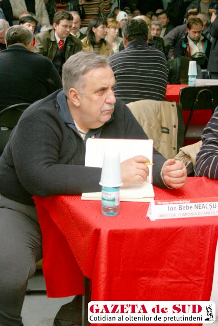 Actualul director al Companiei de Apă „Oltenia“ SA, Ion Bebe Neacşu, recunoaşte că are de cârmuit barca pe o baltă care nu e a lui, dar nu consideră „croaziera“ ceva tocmai ilegal. „Da, bunurile imobile trebuie concesionate, dar, vedeţi, proprietarul lor este chiar acţionarul principal al societăţii, respectiv Consiliul Local Municipal Craiova. Iar dacă acţionarul consimte ca societatea să le folosească, atunci nu cred că e o problemă. În plus, în actul constitutiv este specificat că urmează să fie realizat inventarul domeniului public care ne va fi concesionat“, a spus Bebe Neacşu. El crede că, până în martie 2008, imobilele şi reţelele publice vor fi inventariate şi concesionate. Până atunci, problema tocmai asta e, că acest consiliu local municipal nu poate consimţi, el poate doar să concesioneze sau să închirieze domeniul public, potrivit legii, altor unităţi decât cele publice. Adică şi unui „SC“, indiferent care sunt acţionarii acestuia.