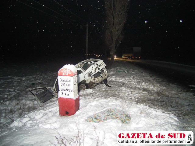 Incidentul rutier a avut loc duminică seară, în jurul orei 18.00, pe raza comunei Osica de Sus. Marius Ioniţă, din oraşul Scorniceşti, se afla într-un autoturismul Opel Astra, la volanul căruia era tatăl său, Marian, de 41 de ani, din aceeaşi localitate. Poliţiştii spun că şoferul nu a adaptat viteza la condiţiile de drum (carosabil acoperit cu zăpadă), autoturismul a derapat şi a intrat pe contrasens, izbindu-se de un autotractor Mercedes, condus regulamentar de Andrei F., de 43 de ani, cetăţean estonian.