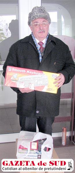 Valeriu Onescu este fericitul câştigător al marelui premiu la Tombola Abonaţilor, extragerea din luna decembrie. Calculatorul performant AMD Athlon 64 3000+, 80 Gb Hard Disk, memorie 512 DDR2, monitor LCD 17“, DVD-RW – oferit în fiecare lună de Gazeta de Sud prin tragere la sorţi – a fost o surpriză plăcută pentru câştigătorul nostru. „Am fost plecat la munte. Soţia m-a sunat să îmi spună că am câştigat. Ne bucurăm pentru acest premiu, cu care va lucra mai mult nepotul meu, Marius“, a mărturisit Valeriu Onescu. Câştigătorul este din Craiova şi este abonat la Gazeta de Sud de când a apărut ziarul. „Noi mai avem un calculator acasă, dar este mai vechi. Eu o să îl păstrez pe acesta şi pe cel vechi o să îl dau bunicului“, a spus Marius Daniel Catană, nepotul câştigătorului, student în anul III la ISE.
