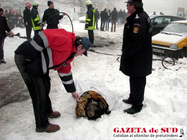 La faţa locului s-au deplasat poliţişti din cadrul Secţiei 3 şi două autospeciale de pompieri din cadrul Detaşamentului 2 Craiova, care, după stingerea incendiului, au scos din canal cadavrul carbonizat al bărbatului. Deocamdată, din informaţiile date de către alt om al străzii, Vasile Ilie, de 57 de ani, care „locuieşte“ în şantierul de lângă Spitalul nr. 3, victima se numea Gheorghe şi era din Băileşti. Trăia în canalul termic de un an, împreună cu nepotul său. „S-a îmbătat. Cred că a venit aici să se odihnească şi a adormit cu ţigara aprinsă“, a declarat Vasile Ilie oamenilor legii. Poliţia face cercetări pentru identificarea persoanei decedate şi pentru stabilirea cu exactitate a cauzelor care au condus la producerea incendiului.