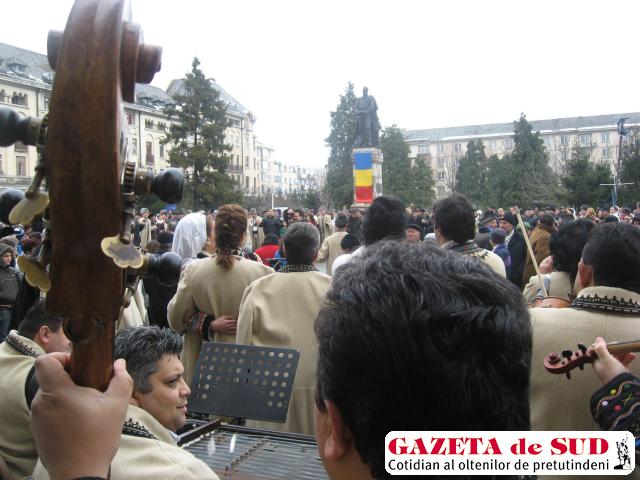 Hora Unirii s-a rotit ieri în centrul Craiovei până a dat în sârbă, după care s-a dizolvat irevocabil printre bucatele de la etajul clădirii Primăriei Craiova. Doar câteva zeci de persoane au ţinut ieri la Craiova isonul autorităţilor în sărbătorirea a 149 de ani de la Unirea Principatelor. Deşi mai restrânsă ca-n alţi ani, dată fiind lipsa unor personaje cu demnitate publică de fiecare dată prezente, dar şi răspunsul difuz al craiovenilor la chemarea primăriei, manifestarea a fost salvată de ritmul alert în care s-au derulat momentele specifice unei astfel de acţiuni. Impulsul a fost dat chiar de primarul Antonie Solomon, care a rostit o alocuţiune vioaie şi l-a salutat direct pe domnitorul Alexandru Ioan Cuza cu „Să trăieşti, Măria ta!“. Sub privirile de bronz ale lui Cuza au fost înşirate flori, au evoluat gărzi şi fanfare şi a fost încinsă Hora Unirii, acompaniată de Ansamblul „Maria Tănase“ în frunte cu Nicu Creţu. Observând disponibilitatea celor prinşi în joc de a mări pasul, maestrul a ordonat până la urmă o sârbă, pe care primarul Antonie Solomon n-a
