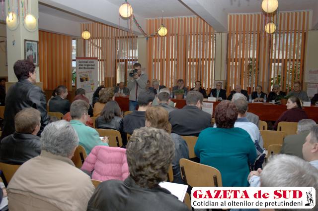 Foarte mulţi dintre cei prezenţi la întâlnire au pus pe tapet problema contorizării consumului de apă potabilă şi menajeră. Ion Cărămidoiu, de la Asociaţia de locatari nr. 49, şi Vergica Pomană au cerut directorului DSUP, Ion Popescu, rezolvarea unei probleme comune. „Citirea contoarelor de apă ar trebui să se facă în prezenţa administratorilor de asociaţie sau a preşedinţilor, întrucât apar de multe ori neconcordanţe“, a spus Ion Cărămidoiu. Florin Cârciumaru i-a sugerat directorului DSUP rezolvarea cât mai urgentă a acestei probleme: „Sunt sigur că data viitoare când vor veni cei de la DSUP să citească valorile contorului, o să vă cheme şi pe dumneavoastră, reprezentanţii asociaţiilor. Se va ocupa domnul Ion Popescu de acest aspect“. „Pe conductă apar pierderi la apă din cauza spaţiilor comerciale de la parterul unora dintre blocuri. Locatarii îşi doresc să fie contorizate apartamentele, însă cei de la DSUP nu au venit pentru punerea contoarelor de apartament. Fiecare să plătească pentru cât consumă. Spaţiile comerciale nu ar trebui să fie contorizate?“, a întrebat una dintre participantele la întâlnire. Ion Popescu, directorul DSUP, a spus: „Va trebui să montăm apometre pe branşament. De acum înainte o să citim contoarele împreună cu administratorul asociaţiei“.