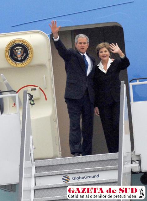 Preşedintele american George W. Bush şi soţia sa, Laura, au sosit aseară în România, la bordul aeronavei Air Force One, venind de la Kiev. Bush va sta în ţara noastră până pe 4 aprilie, pentru o vizită oficială şi pentru a participa la summit-ul NATO. Cuplul prezidenţial american a fost întâmpinat pe aeroport de ambasadorul SUA la Bucureşti, Nicholas Taubman. Este a doua oară când preşedintele George W. Bush se află în România. Precedenta vizită a avut loc în noiembrie 2002 şi a fost marcată de un moment memorabil, potrivit celui mai puternic om de pe planetă – apariţia unui curcubeu chiar în momentul rostirii unui discurs în faţa românilor. La summit-ul de la Bucureşti, care începe astăzi, şi-au anunţat prezenţa peste 50 de şefi de state şi de guverne.