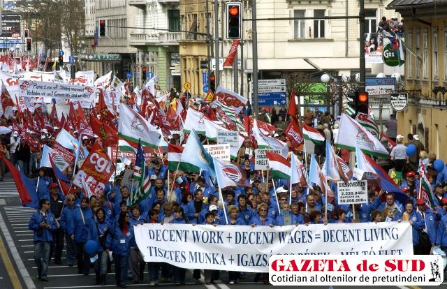 Câteva mii de persoane din toată Europa au manifestat sâmbătă, în Slovenia, ţară care asigură preşedinţia semestrială a Uniunii, pentru a cere o creştere a salariilor, în condiţiile în care inflaţia a atins noi recorduri, iar guvernele pledează pentru austeritate.