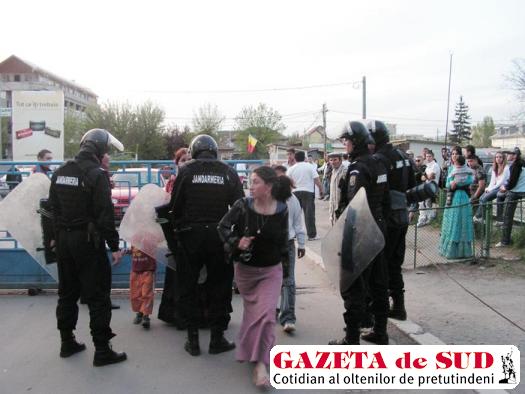 Oamenii legii au amplasat un filtru pe raza satului Ciutura, ce aparţine de comuna Vârvoru. Acolo au reuşit să oprească maşina cu care se deplasau romii, însă a izbucnit un nou cu scandal. Conducerea IPJ a precizat că şeful de post din Vârvoru a fost lovit, iar acesta a ripostat, folosind arma din dotare, şi l-a împuşcat în picior pe Pătru Nistor, unul dintre romi. Acesta împreună cu poliţistul au fost transportaţi la Spitalul de Urgenţă Craiova, pentru acordarea primelor îngrijiri medicale. Pentru a preveni izbucnirea altor conflicte, mai multe echipaje de poliţie, jandarmi şi reprezentanţi ai DPIR s-au deplasat la Spitalul de Urgenţă Craiova. Conducerea IPJ Dolj a susţinut aseară, la ora 21.30, după închiderea ediţiei, o conferinţă de presă în care urma să precizeze ce s-a stabilit din primele cercetări.