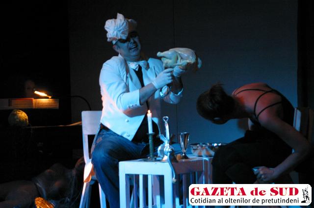Alături de actorii Teatrului din Vârşeţ, Ionel Cugia, Otilia Pescariu şi Florina Petroi, în spectacol au fost cooptaţi şi actorii Teatrului Naţional „Marin Sorescu“ din Craiova – Cătălin Băicuş, Clara Vulpe, Anca Dinu şi Valeriu Dogaru, ultimii doi apărând doar în filmul proiectat în timpul desfăşurării evenimentului.