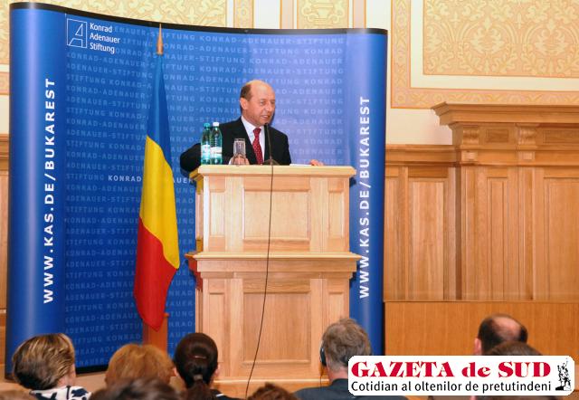Preşedintele Traian Băsescu a fost invitat ieri la dezbaterea cu tema „Securitatea României după summit-ul NATO“, organizată de Fundaţia Konrad Adenauer. Cu această ocazie, şeful statului a rostit un discurs despre concluziile summit-ului NATO de la Bucureşti, în care s-a referit, printre altele, la relaţia României cu Federaţia Rusă.