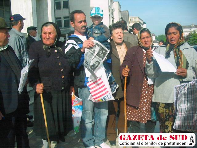 „Suntem aici să arătăm că nu putem să mai înghiţim mizeriile judecătorilor. Îşi bat joc de noi prin hotărârile lor. Am venit din Slivileşti, unde 16 oameni ne judecăm cu o singură persoană pentru pământul nostru. Este strigător la cer să vezi cum pierzi proces după proces cu acte în regulă“, a afirmat Maria Cilibiu. Pe rolul Judecătoriei Târgu Jiu şi al Tribunalului Gorj există sute de procese pe fond funciar.