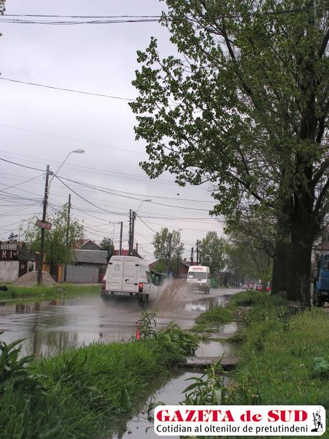 Pe câţiva metri, şanţurile, săpate în pământ, sunt pline ochi cu apă. Undeva, nu prea departe, acestea se înfundă şi picăturile de ploaie nu mai au unde se scurge. Decât în stradă. Gropile mari din asfalt le preiau după puteri sau în funcţie de dimensiuni. Când apa dă şi peste ele, se întind indiferent, ca şi cum şi-ar permite luxul acesta. Încă puţin şi, mai în faţă, pot da de altă groapă. Este răsfăţul apelor pe străzile Craiovei. „Tatăl meu a alunecat încercând se ocolească una, a căzut şi a stat cu mâna în ghips. De fiecare dată când sunt precipitaţii, prin faţa porţii nu mai poţi trece decât cu cizme. Parcă suntem pe uliţă, ai nimănui. Şi când ajungi la strada principală, te îngropi cu maşina. Că la noi aşa e: fereşti groapa şi intri în baltă şi invers. Oricum, bine nu e“, spun oamenii de pe strada Grădiştei. Pietonii sunt una cu gardurile, mergând aproape lipiţi de ziduri, pentru a nu fi udaţi de autovehicule. Câte un şmecher care abia se vede la volan trece în viteză, împroşcând cu zoaie în stânga şi-n dreapta.