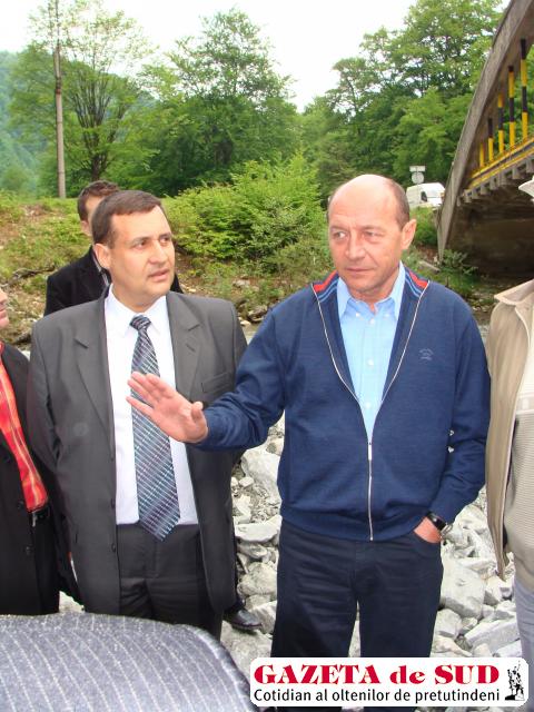 Preşedintele l-a luat la întrebări şi pe prefectul de Gorj, pentru că, până în prezent, constructorul nu a primit nici un leu pentru finanţarea lucrărilor. Victor Banţa a spus că banii vor fi achitaţi, conform programului stabilit, până pe 16 mai, şi că nu sunt întârzieri legate de efectuarea construcţiei: „Mă îngrijorează faptul că o trecere dinspre sud spre centrul ţării este în halul în care este şi că ne lovim de chestiuni birocratice. Eu vă spun că voi veni foarte des aici şi că măcar presiune publică pun pe voi, pe toate autorităţile şi pe constructor“, i-a spus Băsescu lui Victor Banţa, care a încercat să-i explice preşedintelui că sunt probleme legate şi de terenurile din jurul podului, care aparţin unor persoane ce se opun realizării construcţiei. Preşedintele Băsescu a mers până la Câmpul lui Neag, unde s-a declarat mulţumit de felul în care au evoluat lucrările la drumul ce leagă Valea Jiului de Băile Herculane.