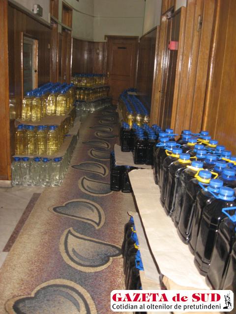 GORJ. Comisarii Gărzii Financiare Gorj au capturat duminică seară o impresionantă cantitate de alcool şi boabe de porumb de contrabandă. Potrivit comisarului-şef Traian Iana, în urma unor informaţii primite, comisarii au verificat o autoutilitară care aparţinea unei firme din Târgu Jiu. În maşină a fost găsită cantitatea de 3.000 de litri de băuturi alcoolice ambalate în PET-uri a câte trei litri: „Toată cantitatea de băuturi alcoolice nu avea banderole fiscale, motiv pentru care a fost confiscată. Mai mult decât atât, agentul economic a fost sancţionat cu amendă contravenţională în valoare de 50.000 de lei, conform Codului de Procedură Fiscală“.