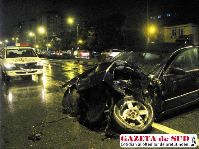 Un tânăr de 23 de ani a scăpat luni noapte ca prin minune, cu răni uşoare, deşi a intrat cu maşina într-un stâlp de beton şi a rupt un pom de pe bulevardul Calea Bucureşti din Craiova.