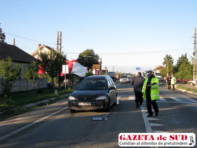 Ştefan Cristian Stoica, de 12 ani, din Găneasa, se îndrepta ieri, în jurul orei 8.30, spre şcoală. Băiatul se angajase regulamentar în traversarea străzii, dar pe trecerea de pietoni a fost accidentat de un autoturism Opel Astra. Mihai Cernăianu, de 40 de ani, din Drăgăşani, judeţul Vâlcea, susţine că băiatul a ieşit pur şi simplu în faţa maşinii. „Veneam de la Drăgăşani şi mă îndreptam spre Slatina. La un moment dat, în apropierea trecerii de pietoni din Găneasa am văzut un grup de copii. Doi dintre ei au rămas pe marginea şoselei, iar unul mi-a ieşit pur şi simplu în faţă“, a declarat şoferul.