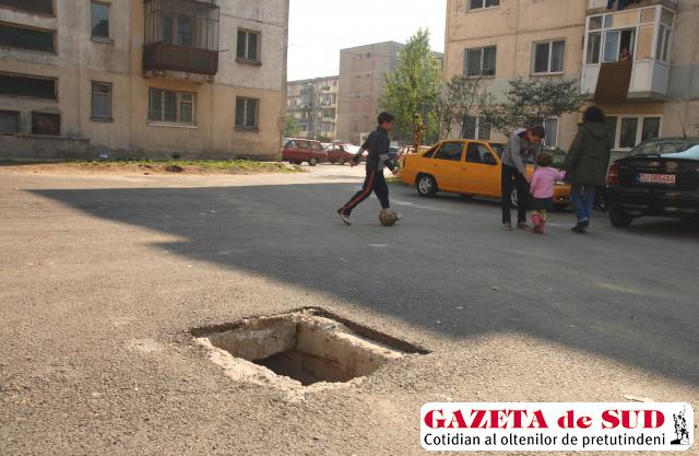 Groapa din mijlocul parcării blocului 95B1 nu poate trece neobservată însă şi de locuitorii din zonă, care au înroşit degeaba telefoanele Primăriei Craiova.