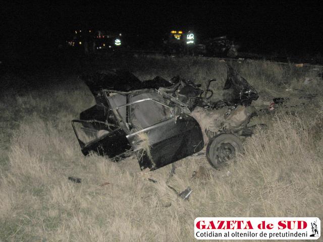 Poliţiştii din cadrul Serviciului Poliţiei Rutiere Dolj au definitivat cercetările în cazul accidentului mortal petrecut duminică seară pe raza comunei Dobreşti. Conform acestora, Andrei Marius, de 25 de ani, din Zimnicea, care conducea un Opel Astra cu volan pe dreapta, dinspre Craiova către Bechet, nu a adaptat viteza de deplasare într-o curbă şi a pătruns pe contrasens, unde a lovit o Dacie care circula regulamentar din sens opus. Poliţiştii spun că şoferul Opelului nu a frânat deloc, ci a intrat pur şi simplu în cealaltă maşină. După impact, Opelul s-a învârtit şi s-a oprit pe şosea, la o distanţă de 50 de metri, făcut zob. Dacia 1310, în care se aflau Ionel şi Constanţa Cristescu, ambii de 55 de ani, angajaţi la PMS Craiova, precum şi Petruţa Raluca Popa, de 20 de ani, din Grojdibodu, judeţul Olt, a zburat aproximativ 30 de metri, oprindu-se pe câmp. Coliziunea a fost atât de puternică, încât ocupanţii Daciei au fost proiectaţi prin geam, poliţia descoperindu-le cadavrele pe câmp, în jurul maşinii. Andrei Marius a rămas prins între fiarele autoturismului pe care îl conducea. Toţi au murit pe loc. Poliţiştii nu ştiu ce viteză avea Opelul condus de tânărul din Zimnicea, care a cauzat accidentul, întrucât kilometrajul de la bord a înţepenit la zero. Aceştia spun că şoferul a intrat pe contrasens fără să depăşească altă maşină fie din cauză că a adormit la volan, fie pentru că a avut viteză mare şi nu a mai putut controla maşina. Martorii au spus că drumul este foarte periculos în acea curbă, mai ales din cauza îngustimii sale. Poliţia i-a contrazis, spunând că vizibilitatea şi semnalizarea sunt bune. Cât despre ecartament, oamenii legii susţin că lăţimea acestuia este de şapte metri, ca la orice drum naţional.