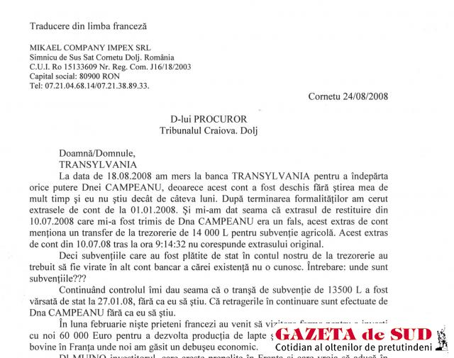 După cinci ani de dragoste nebună cu Mirela Cîmpeanu, Cardot s-a trezit fără un sfanţ, dar cu dorinţa de a dezvolta afacerea începută promiţător. A găsit alt investitor, specialist în creşterea prepeliţelor, care era dispus să investească aproximativ 60.000 de euro în afacerea cu vacile de la Cornetu. Prudent, „prepeliţarul“ a cerut o evaluare a firmei, făcută de o bancă din România. „Când a auzit Mirela că trebuie evaluare, s-a oferit să se ducă ea la bancă şi să rezolve. Ne-a prezentat un raport de vizită şi analiză a garanţiilor cu antetul Băncii Transilvania, din care reieşea că firma noastră valorează peste 300.000 de euro şi că este viabilă. Ne-am bucurat până când am descoperit că şi acel raport era tot un fals. Nu înţeleg de ce a făcut aşa, că doar mă iubea!“, a mai spus Cardot. „Banca Transilvania nu face astfel de rapoarte, iar cel care a semnat, Daniel Preda, nu a fost niciodată angajatul nostru. În caz de cerere de credit, noi lucrăm cu două firme agreate de bancă şi nu cu persoane fizice, iar dosarul pe care-l prezintă specialiştii cuprinde, pe lângă date financiare, şi fotografii cu activele pe care microîntreprinderea doreşte să le pună gaj. În cazul acesta, este vorba de un fals grosolan. Dacă domnul în cauză doreşte alte informaţii, noi i le putem furniza, iar dacă instanţa de judecată ne va cere, de asemenea putem să acordăm informaţii. Ne pare rău pentru cel care a păţit aşa ceva, dar, subliniez, este un fals grosolan“, a spus Doru Pătraşcu, director regional la Sucursala Craiova a Băncii Transilvania.