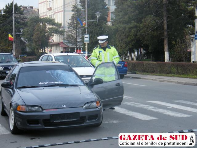 GORJ. O tânără de 18 ani, din Dobriţa, judeţul Gorj, a fost rănită grav de un autoturism la volanul căruia se afla un timişorean de 20 de ani. Accidentul s-a produs ieri, în municipiul Târgu Jiu, în apropierea pasarelei, la ieşirea din oraş. Cu toate că a fost izbită violent de o maşină şi aruncată la câţiva metri, în apropierea unei treceri de pietoni, fata a supravieţuit, fiind transportată în stare gravă la spital. În urma impactului violent, victima a suferit mai multe leziuni la cap, fiind internată la Secţia de reanimare din cadrul Unităţii de Primiri Urgenţe a Spitalului din Târgu Jiu. Potrivit unor martori ai accidentului, fata a încercat să se strecoare printre câteva maşini pentru a traversa strada, însă nu a mai reuşit să ajungă pe celălalt trotuar, întrucât a fost lovită de un autoturism. Şoferul implicat în accident a declarat că tânăra a sărit în faţa maşinii şi nu a mai apucat să frâneze. Totul s-a întâmplat sub privirile mamei şi ale fratelui acesteia, care o aşteptau să treacă strada.