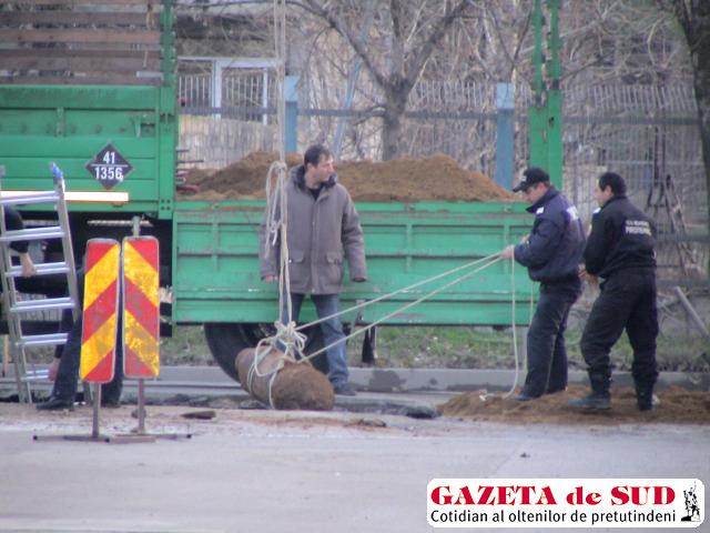 Peste 1.000 de persoane au fost evacuate din blocurile cartierului Schela Cladovei, iar circulaţia rutieră a fost blocată timp de aproape două ore. Toate unităţile de pirotehnişti de la ISU Drobeta au intervenit pentru scoaterea bombei de sub asfalt. Ea nu a putut fi ridicată decât cu ajutorul unei scări rulante, care a aşezat-o într-un camion plin cu nisip. Pe tot parcursul operaţiunii, Jandarmeria a condus persoanele evacuate departe de locul cu pricina. Astăzi, în jurul orei 12.00, proiectilul de aviaţie va fi detonat într-un poligon special de la marginea oraşului.