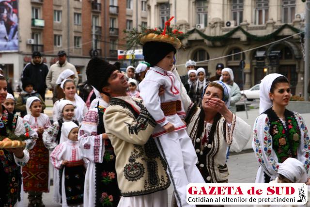 Pe esplanada din faţa Prefecturii Dolj au adus colindele şi obiceiurile tradiţionale de iarnă prin cânt şi dans Ansamblul „Piticii veseli“ din Melineşti, Ansamblul „Alunelul“ din Pieleşti, Ansamblul „Victoria Gheorghe“ din Bechet, Ansamblul „Dor călător“ din Craiova, Ansamblul „Roua Cloşani“ din Padeş – Gorj, Ansamblul „Liliacul“ din Baia de Aramă – Mehedinţi, Ansamblul „Măgura“ din Codlea – Braşov şi Ansamblul „Deli Jovan“ din Târnaica – Serbia. Cu mic, cu mare, în port popular specific zonelor din care provin, urătorii au readus pentru câteva ore frumuseţea obiceiurilor. De la întâlnirea cu datinile şi tradiţiile populare româneşti nu au lipsit nici soliştii Mădălina Stoica Tănasie, Lavinia Bârsoghe şi Taraful lui Streaţă.