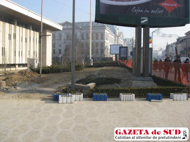 Lucrările de reamenajare a platoului Teatrului Naţional „Marin Sorescu“ din Craiova sunt întârziate. Investiţia este abia la jumătate, când mai este o lună până expiră contractul, au arătat reprezentanţii primăriei. Antreprenorul susţine însă că nu mai e atât de mult de lucru, dar ce a rămas nu poate fi terminat la temperatura de afară. „Mai avem de realizat aleea din partea estică, dinspre Universitate, şi spaţiul verde. Amândouă sunt lucrări care nu pot fi făcute la temperaturile din această perioadă“, a spus Cristian Ignat, directorul UTI Internaţional. Acesta a mai afirmat că, dacă temperatura mai creşte, într-o săptămână lucrarea ar fi gata.