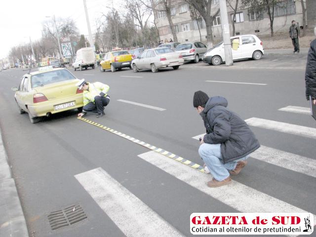 Un tânăr de 22 de ani din Craiova a ajuns ieri în secţia de urgenţă a Spitalului Judeţean din localitate, în jurul orei 11.00, după ce a fost lovit de un taximetrist în timp ce se afla pe trecerea de pietoni. Incidentul a avut loc pe bulevardul 1 Mai, în faţa Facultăţii de Medicină. Taximetristul Dorel Fota, de 37 de ani, din Craiova, aflat la volanul unui Daewoo Cielo, circula cu viteză dinspre Parcul „Romanescu“ spre Ciupercă, în timp ce Sebastian Petrescu traversa strada pe marcajul pietonal. Şoferul a frânat în apropierea trecerii de pietoni, însă l-a accidentat grav pe tânăr. Victima a fost transportată cu ambulanţa la Unitatea de Primiri Urgenţe, pentru acordarea îngrijirilor medicale, fiind diagnosticat cu fractură de umăr. Şoferul vinovat a fost testat cu aparatul etilotest, rezultatul fiind negativ. Poliţiştii de la Rutieră continuă cercetările, pe numele taximetristului fiind deschis un dosar penal pentru vătămare corporală gravă din culpă.