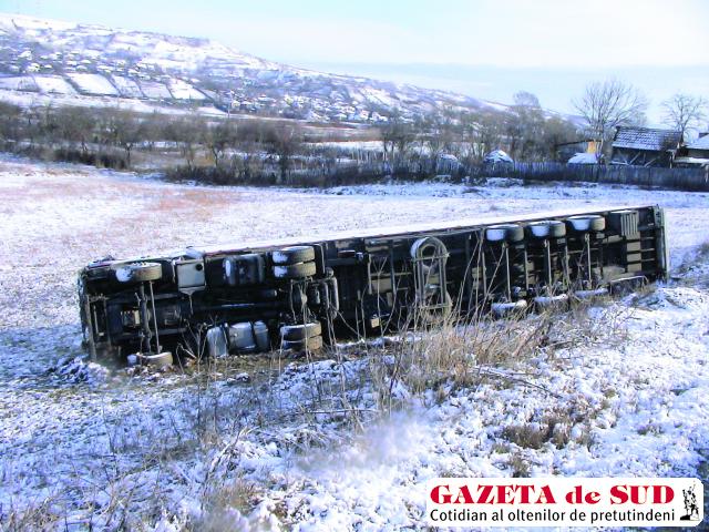 Doi bărbaţi, un român şi un bulgar, au fost implicaţi în două evenimente petrecute într-un sat din Mehedinţi, care este traversat de DE 70. Unul era şofer pe un tir, iar celălalt, pe o autoutilitară. Dacă bulgarul a reuşit să scape cu viaţă după ce tirul în care se afla a derapat şi s-a răsturnat pe câmp, şoferul din România a făcut infarct miocardic şi a murit la volanul maşinii pe care o conducea.