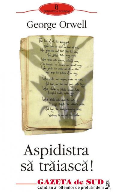 Romanul „Aspidistra să trăiască!“, publicat pentru prima oară în 1936 şi presărat cu numeroase detalii autobiografice, este o satiră muşcătoare la adresa vieţii literare şi a societăţii capitaliste ce ridica banul la rang de religie. Proiectând naraţiunea pe fundalul Marii Depresiuni Economice din anii ’30, Orwell realizează o cronică sumbră, emoţionantă, dar străbătută de puternice accente comice, a războiului personal purtat de Gordon Comstock, un mărunt poet londonez trecut de prima tinereţe, împotriva dominaţiei „zeului-ban“ ce corupe toate aspectele existenţei şi a „decenţei meschine a clasei medii de jos“, al cărei simbol prin excelenţă este, în viziunea sa, aspidistra, planta ornamentală nelipsită din fereastra oricărei case din Anglia.