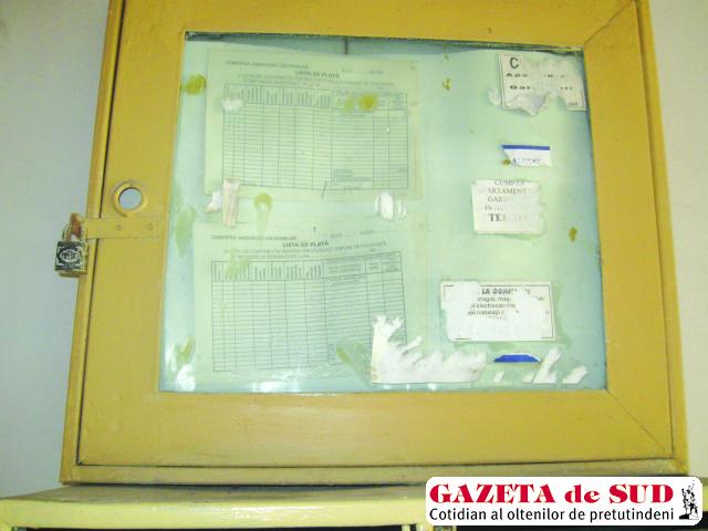 „Nu vă mai uitaţi că alea sunt vechi. Nu este afişat nimic“, spune acelaşi locatar. Este chiar blocul în care locuieşte preşedintele, administratorul… Mihail Stoilă, cel care închide şi deschide atunci când vrea uşa asociaţiei de locatari, cel puţin aşa susţin proprietarii. „La Asociaţia nr. 9 este un dezastru. Administratorul este şi preşedinte, şi contabil, încasează şi bani. Nu are treabă cu locatarii. Pe la asociaţie vine o dată pe lună. Dacă vrei să plăteşti trebuie să-l cauţi acasă. Am înţeles că are şi dosar penal“, susţine o locatară din blocul E13, unde se află şi sediul asociaţiei. Nimic din ce spun locatarii nu este negat de „multifuncţionalul“ reprezentant al asociaţiei, Mihai Stoilă. „Aşa este, dar oamenii nu-şi dau interesul. Acum patru ani, când am ţinut adunarea, nu au venit decât 16 persoane. Ei au vrut să mă aleagă pe mine. Le fac pe toate. Nici comitetul nu este interesat. Erau vreo cinci persoane, dar… Şi de la primărie mi-au făcut control, au trecut acolo mai multe obiective pe care le am de îndeplinit, dar pe mine mă interesează când se finalizează cercetarea de la poliţie să nu am lipsă în gestiune“, recunoaşte cu seninătate Stoilă. El mai spune că acum se ocupă cu completarea convocatorului pentru întrunirea locatarilor, cu scopul de a pune ordine în asociaţie, „întrunire“ sau adunare generală recomandată la ultimul control de Primăria Craiova, dar aceasta se întâmpla acum un an.