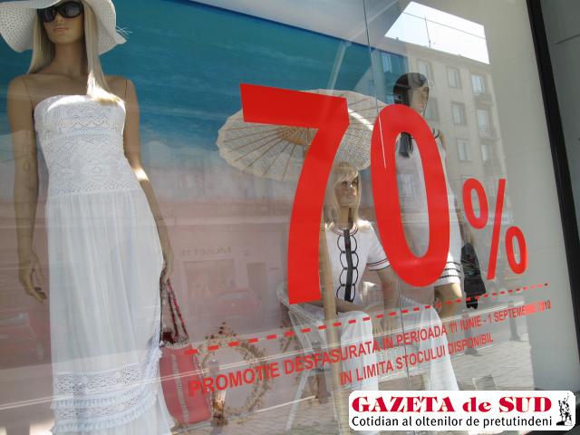 Deocamdată însă, ca şi în anii trecuţi, cele mai multe firme preferă să recurgă la reduceri şi promoţii. Craiovenii pot cumpăra haine şi încălţăminte de vară la preţuri cu până la 80% mai ieftine faţă de lunile trecute. Totuşi, cei interesaţi trebuie să aibă în vedere faptul că reducerile aplicate în magazine cresc progresiv până la introducerea pe piaţă a colecţiilor de toamnă-iarnă. În această perioadă, de exemplu, diminuările aplicate pornesc de la 20%, cele mai multe magazine optând pentru înjumătăţirea preţurilor. La acestea se adaugă tot felul de oferte de tipul „1+1 gratis“ sau „cumperi o pereche de pantofi şi a doua este la jumătate de preţ“.