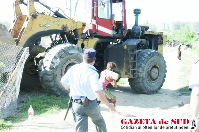 Mai mult de 30 de construcţii în care trăiau 160 de romi – după calculele primăriei, peste 200 – după declaraţiile locuitorilor din zonă, au fost rase vineri de pe faţa pământului la marginea Craiovei, în zona Potelu.