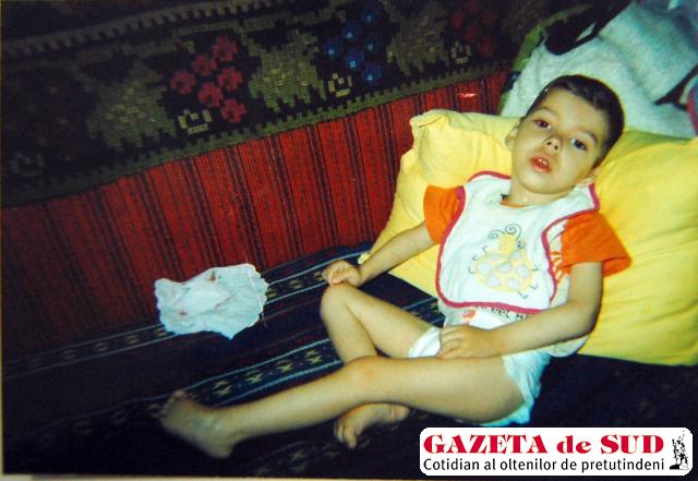 A fost dorit de părinţi, a fost, pe când încă era în pântecul mamei, copilul care se dezvolta „uimitor de bine şi de sănătos“. A fost…, acum este aproape o legumă, un băieţel de trei ani şi două luni ţintuit în pat. Nu poate merge, nu poate vorbi, mâinile nu-l ajută să prindă jucăriile, nu se hrăneşte singur. Nu se poate bucura de clipele frumoase ale copilăriei. Îl poartă bunica în braţe şi în cărucior.