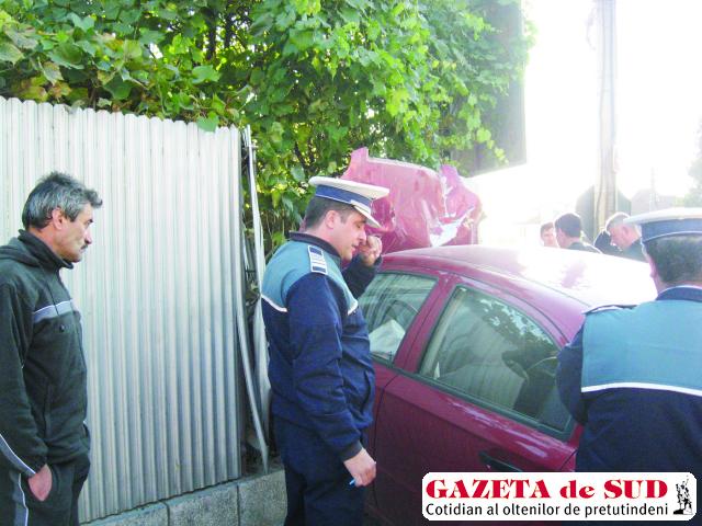 Un autoturism care circula pe strada Brestei a intrat ieri după-amiază în gardul metalic al unei proprietăţi de la intersecţia cu strada Elena Teodorini, după ce s-a lovit de bordura trotuarului. În maşină se aflau şoferul, Viorel Popescu, de 38 de ani, din Craiova, şi fetiţa acestuia, de nouă ani.