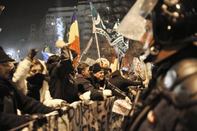 Unii protestari de la fântâna de la Universitate, din zona Facultății de Arhitectură, unde erau, în majoritate, suporteri şi membri ai „Noua Dreapta“, au dărâmat gardurile instalate de jandarmi şi au ieşit în stradă. De asemenea, în Piaţa Universităţii au ajuns şi suporterii mai multor echipe de fotbal, care, de altfel, şi-au anunţat prezenţa la protestele din Bucureşti, însă au susţinut că vor fi paşnici.