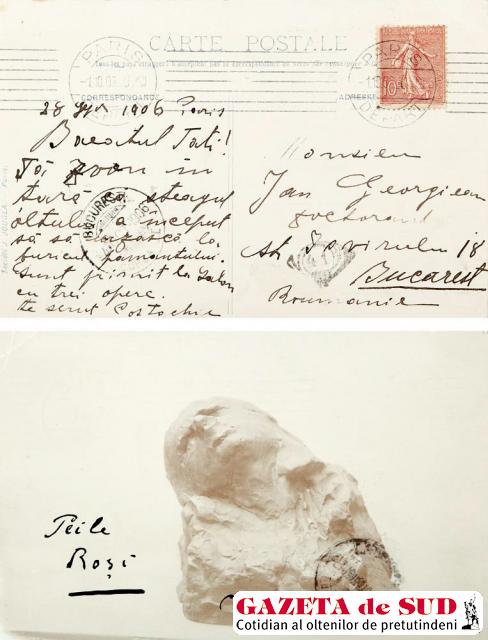 „Peile roşi“, datată în 1906, are o valoare de vânzare cuprinsă între 2.000 şi 4.000 de euro. În textul de pe verso, datat şi localizat „28 septembrie 1906, Paris“, stă scris: „Băeatul Tati! Fă zvon în ţară că steagul Oltului a început să să urzască la buricul pământului. Sunt primit la Salon cu trei opere. Te serut Costachie. Monsieu Ion Georgiean, Doctorand, str. Izvorului, nr. 18, Bucarest, Roumanie“. Interesantă este, însă, şi imaginea de pe faţa cărţii poştale. „Peile roşi“ este una dintre sculpturile distruse de artist în 1907, într-un acces de răzvrătire faţă de ceea ce crease în perioada impresionismului, când Brâncuși era elev al lui Auguste Rodin. Astfel, cartea poştală trimisă prietenului Gheorghian-Popescu este unicul document rămas care prezintă una dintre operele dispărute. Fotografia a fost reprodusă cu ocazia Centenarului Brâncuşi din 1976 în România Literară şi provine din colecţia privată bucureşteană Călin Eftimie.